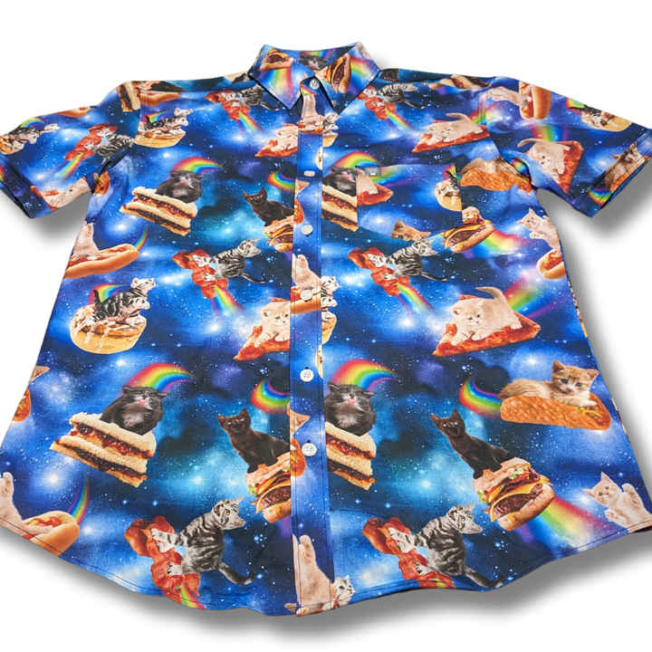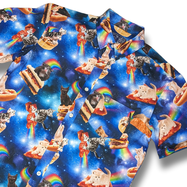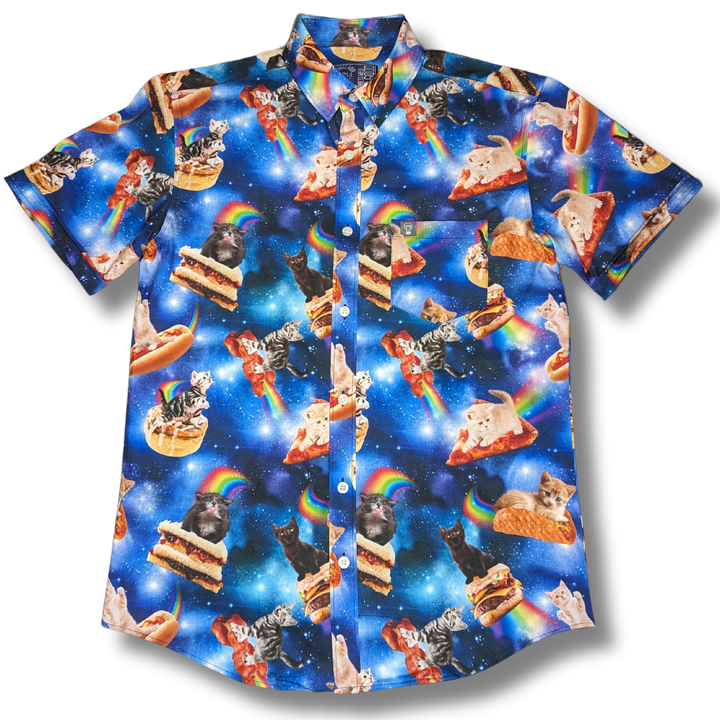 Introducing "Cosmic Cat Food" – the shirt that's light-years ahead in the fashion galaxy! As cosmic cats invade with an insatiable hunger for our earthly snacks, this shirt becomes humanity's stylish declaration of peace and provision. Crafted from the softest materials in the known universe, this design isn't just a garment; it's a mission statement from Project Good Apparel to "Feed The Beasts" – both terrestrial and extraterrestrial.